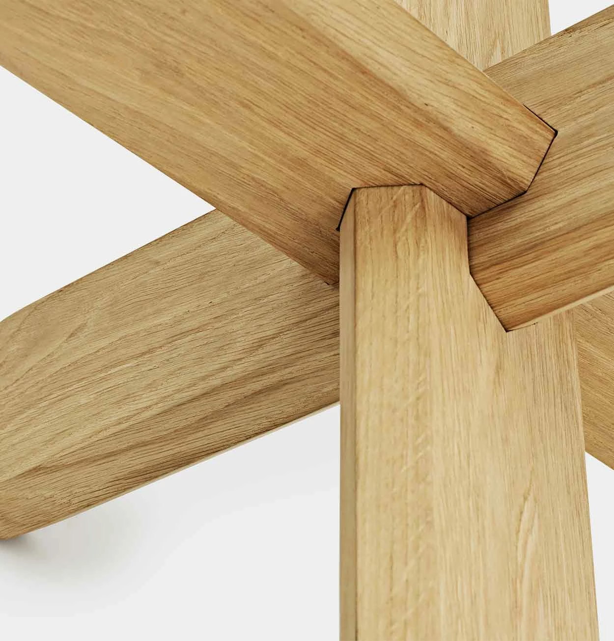 The Ding table is inspired by ancient three-dimensional wooden brain teaser puzzles. The table consists quite simply of three legs made from oak have that are assembled without screws and tools of any kind.When put together they constitute a sculptural knot that works as the base for an exclusive glass tabletop. The legs are rounded off with chamfered edges, making the table stand sturdily on the floor and the round sheet of glass sit solidly on the base. The Ding table is available with either a clear or smoked glass tabletop, and with a choice of three different types of legs, there is ample opportunity to find exactly the style that suits your furnishings and taste. For example, you can combine a clear glass tabletop with legs in natural for a clean and Nordic expression, or turn up the intensity with a smoked table top in bold coral-colored or striking black legs.