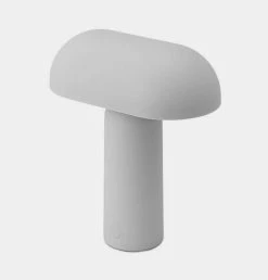 The Normann Copenhagen Porta Table Lamp consists of a lamp shade resting on a sturdy, rounded base, both of which are made from ABS plastic. A white, acrylic inner screen ensures a pleasant and even glow. A silicone base ring allows the lamp to stand securely.